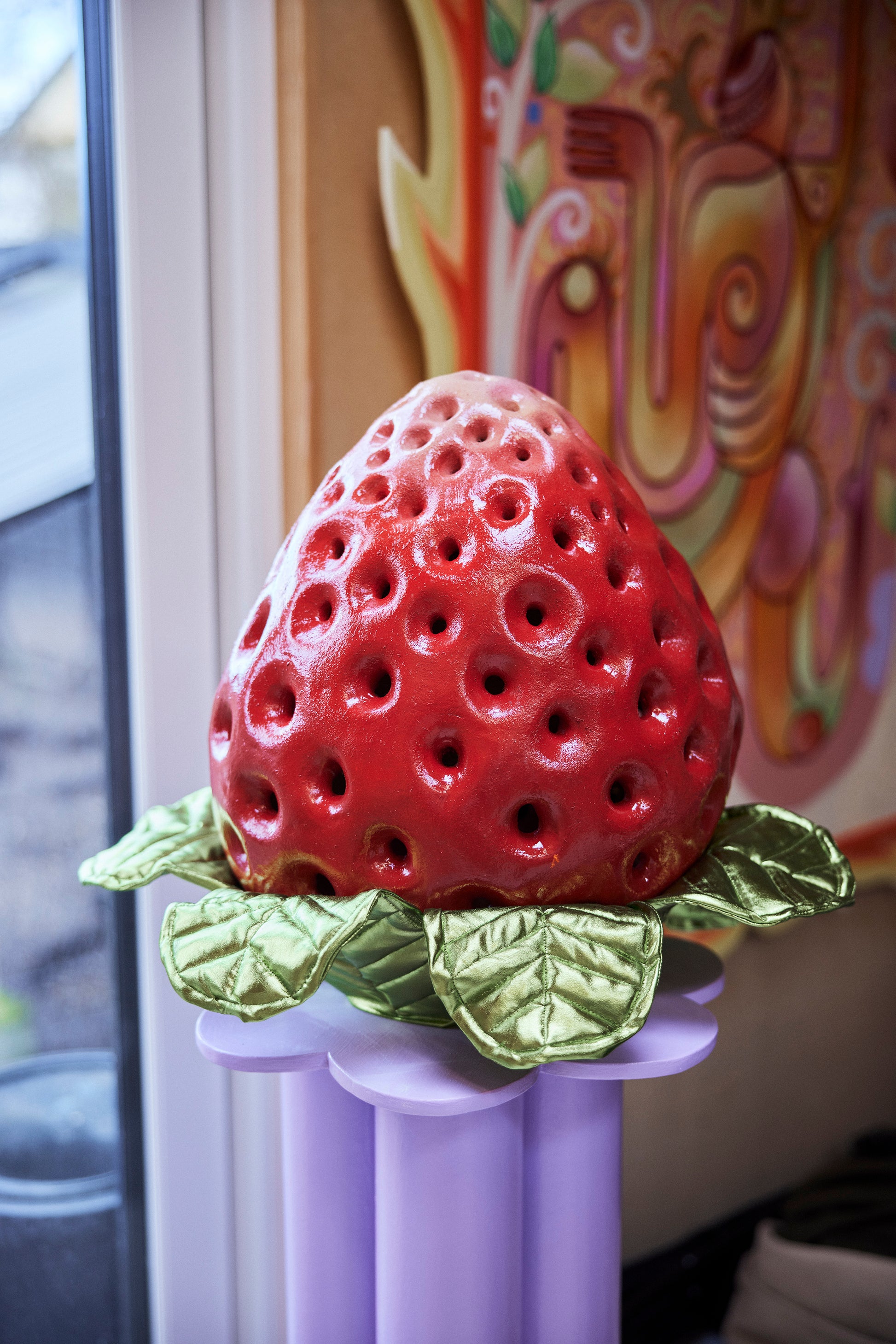 Bag kunsten indeholder portrætter af 12 danske samtidskunstnere og hertil 24 kageopskrifter inspireret af kunstnernes arbejdsmetoder, historier og udtryk.